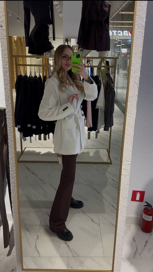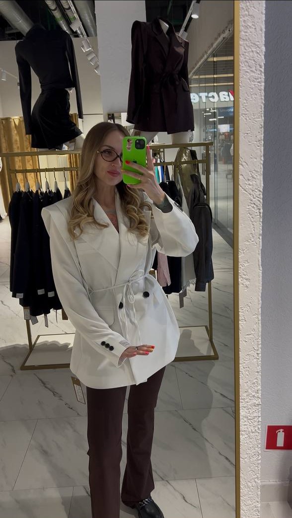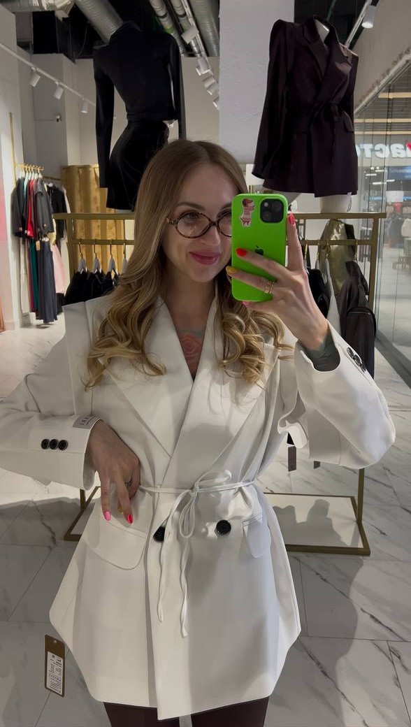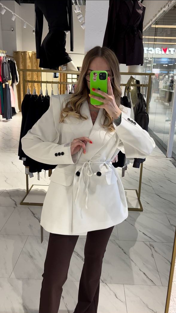 Шикарный двубортный жакет в белом цвете — идеальный выбор для тех, кто ценит стиль и комфорт. Структурированный крой с подчёркнутыми линиями плеч создаёт современный, уверенный силуэт, а удлинённый фасон добавляет элегантной строгости.