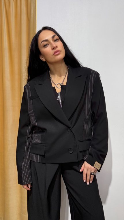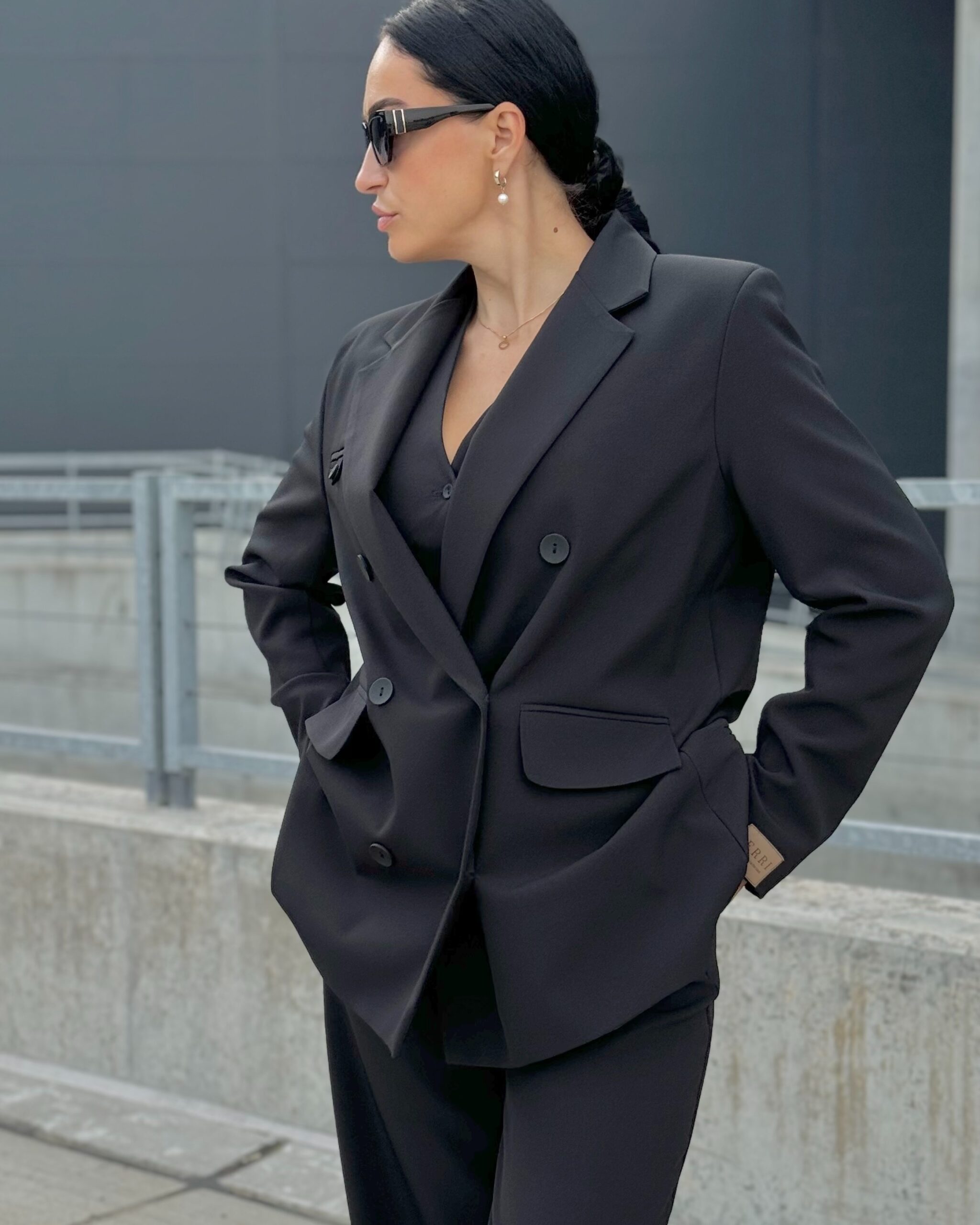 - Практичная длина, позволяющая носить жакет как с классическими брюками, так и с юбками различной длины