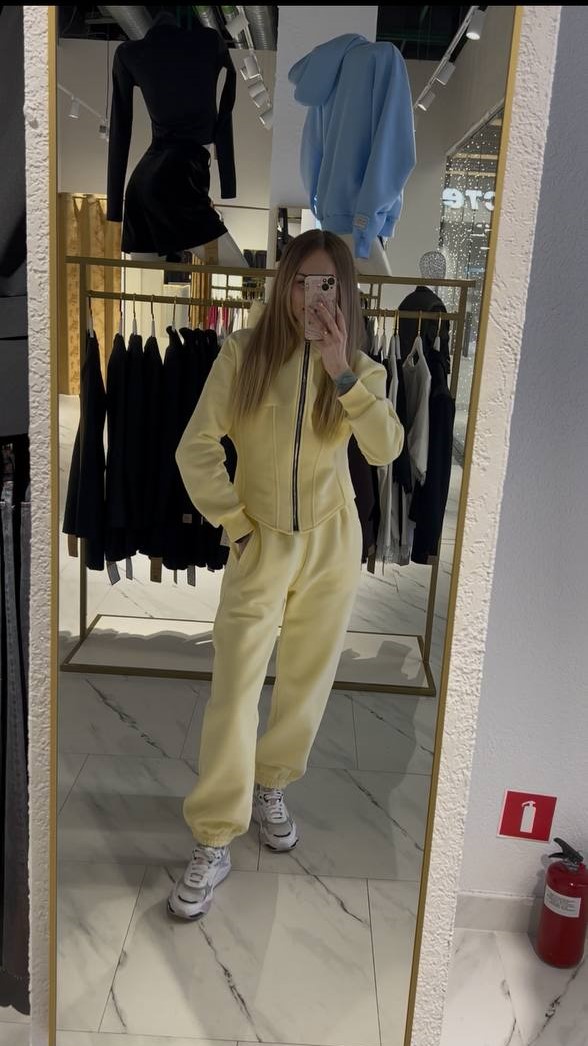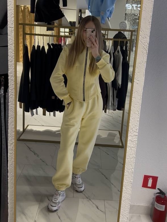 Современный костюм— идеальный баланс уюта и городской элегантности. Верх с молнией выполнен в крое, моделирующем талию — лёгкий корсетный эффект подчёркивает силуэт, а продуманная посадка не сковывает движений. Брюки — комфортные джоггеры с зауженным низом и вшитыми боковыми карманами: практично для прогулок и стильных образов.