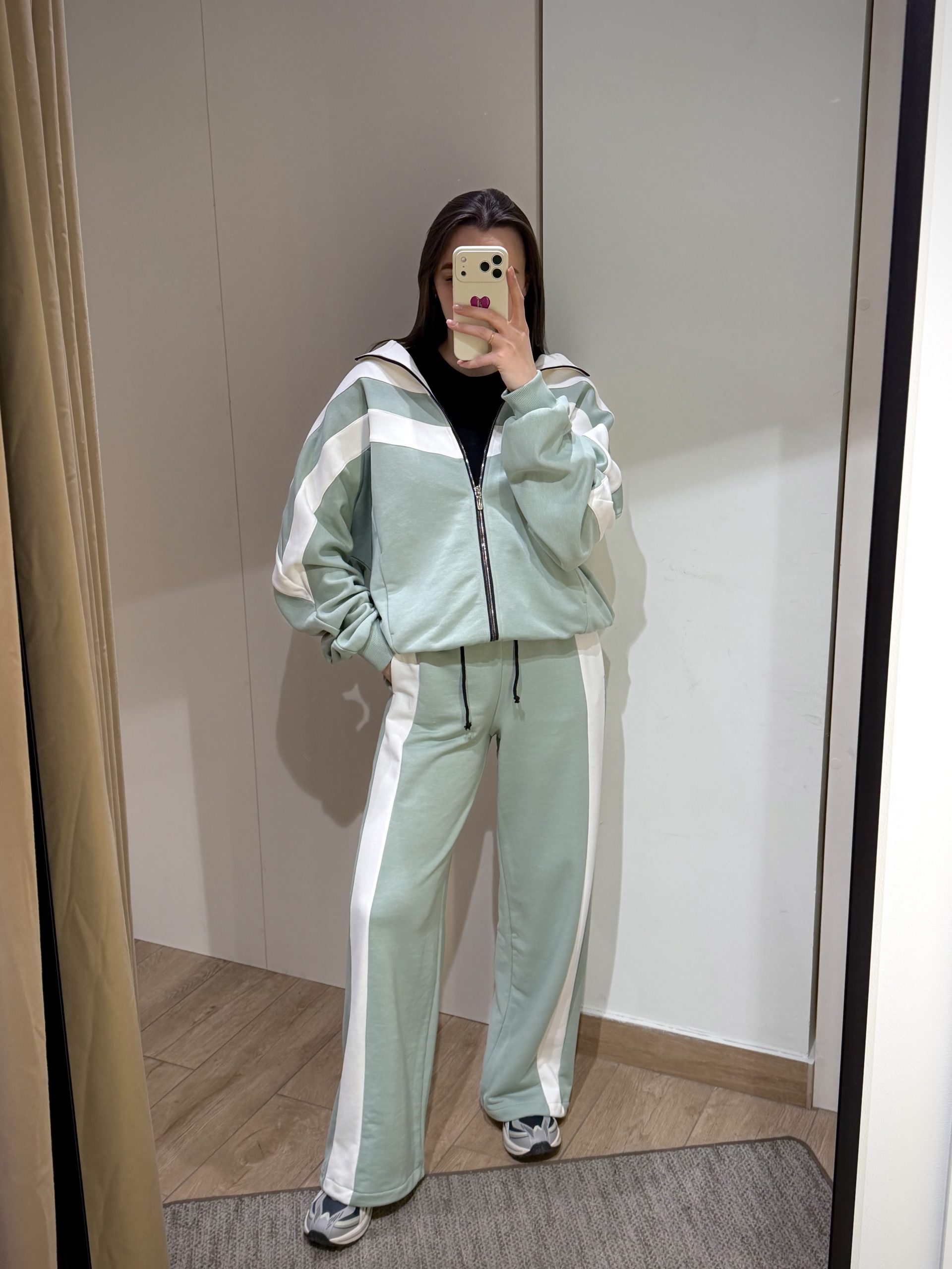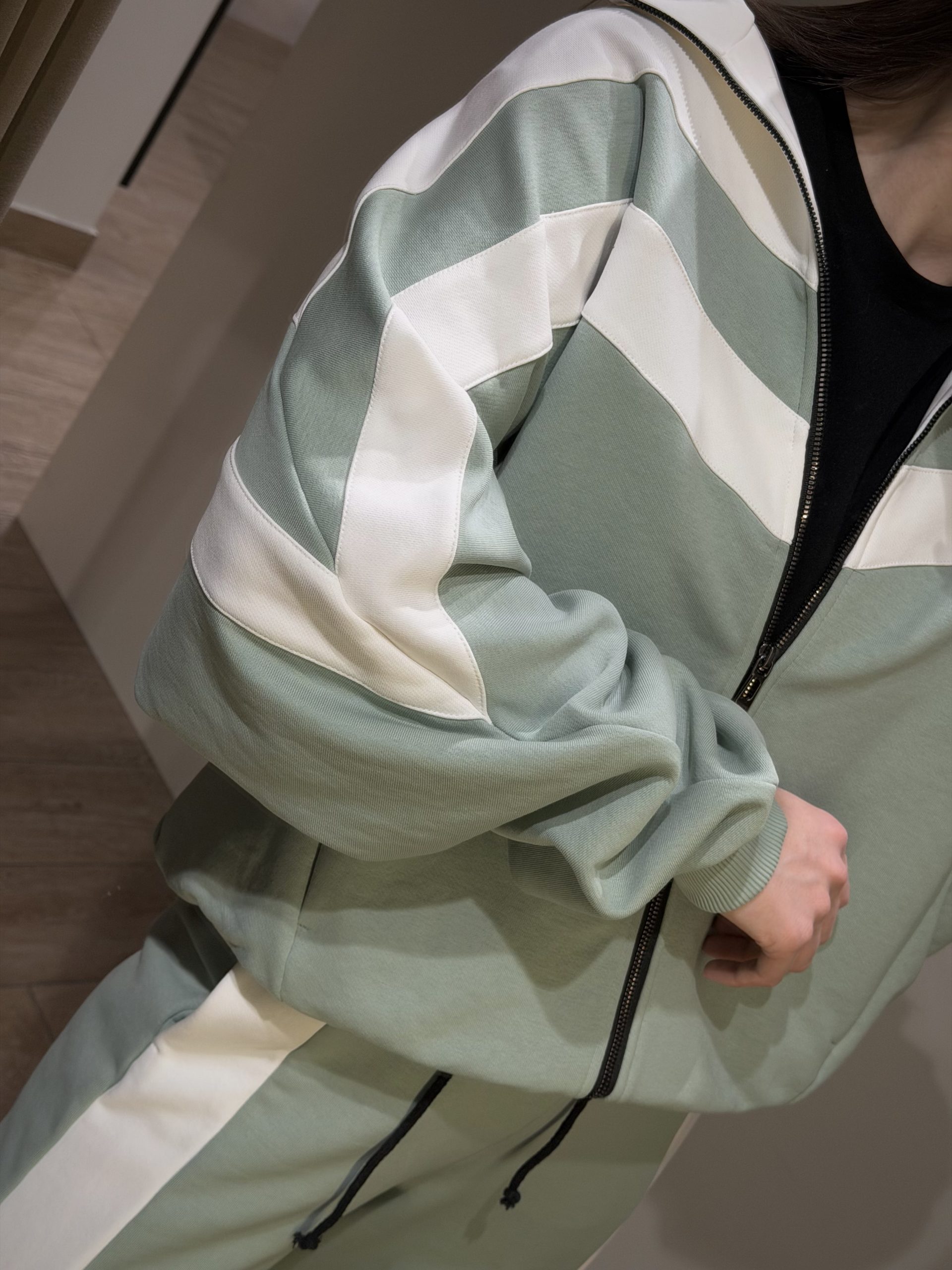 Легкий мятный спортивный костюм с белыми контрастными вставками — идеальный выбор для тех, кто ценит комфорт и стиль. Верх с практичной молнией и выразительными полосками по груди и рукавам придаёт образу динамику, а свободный оверсайз-крой создаёт модный расслабленный силуэт. Брюки на широкой резинке с белыми лампасами визуально удлиняют ноги и обеспечивают комфорт в течение всего дня.