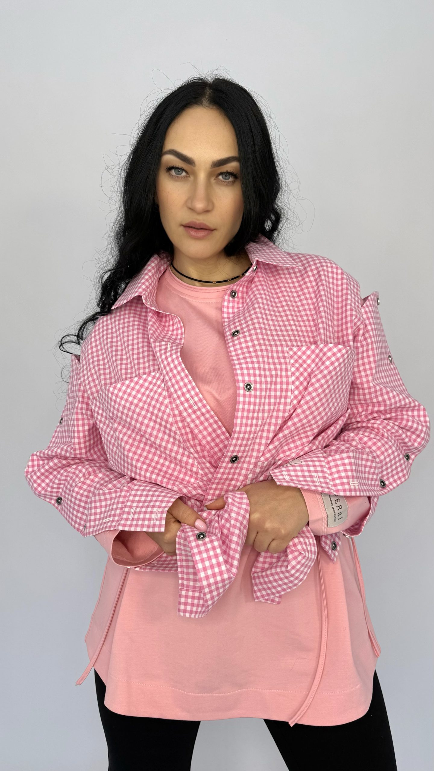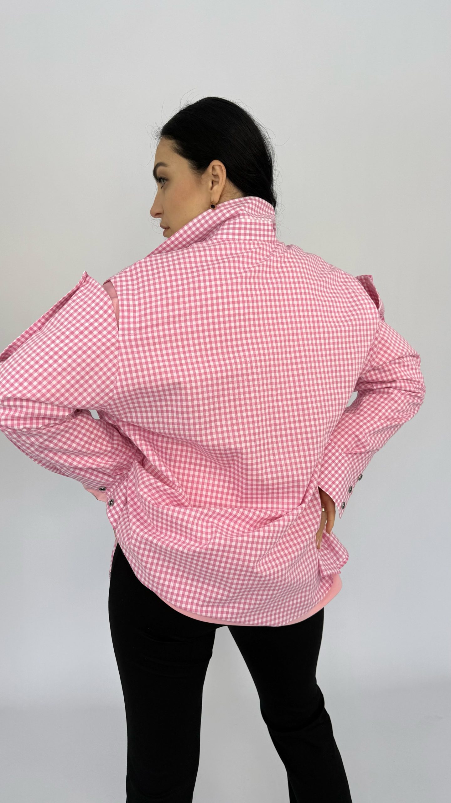 Лаконичная, но очень заметная рубашка в клетку — идеальный выбор, если хотите добавить образу характер и цвет. Оверсайз‑силуэт сидит свободно и приносит максимум комфорта: оригинальные детали на рукавах — ряд пуговиц/люверсов, позволяющих менять посадку и делать образ более динамичным.