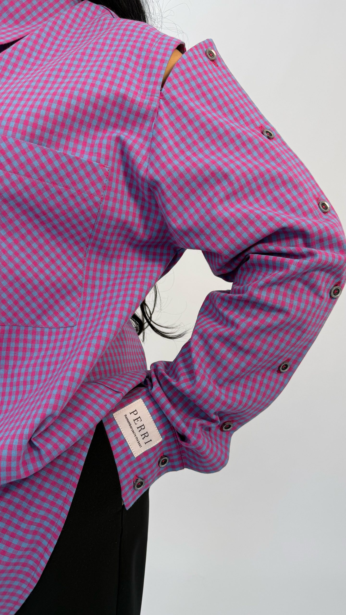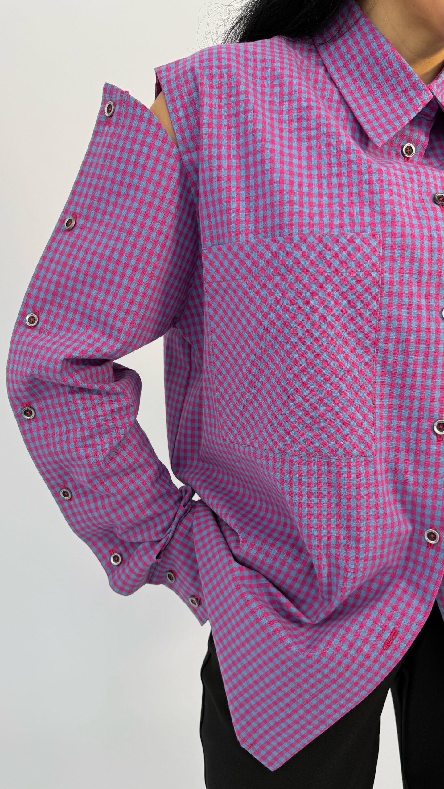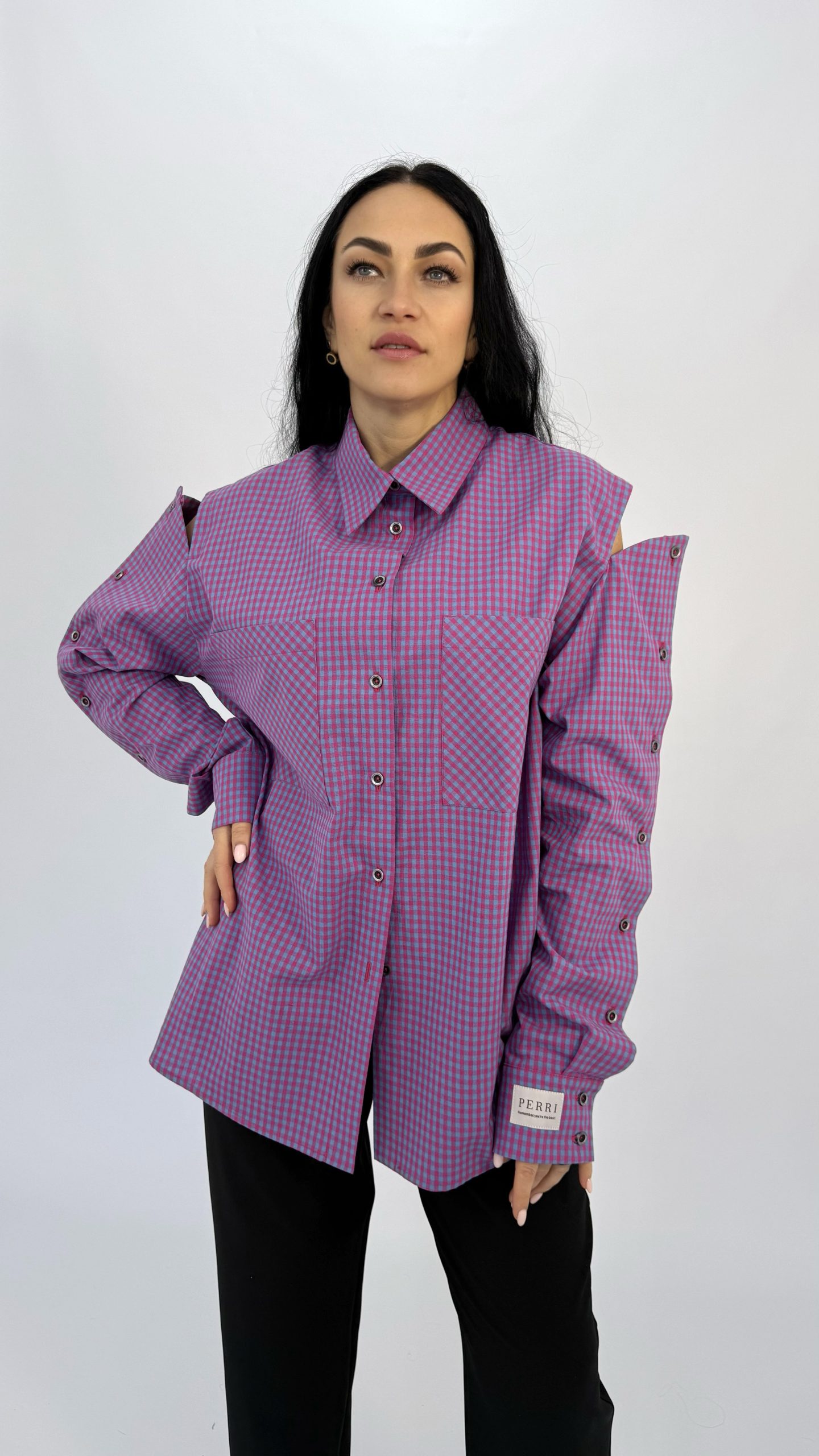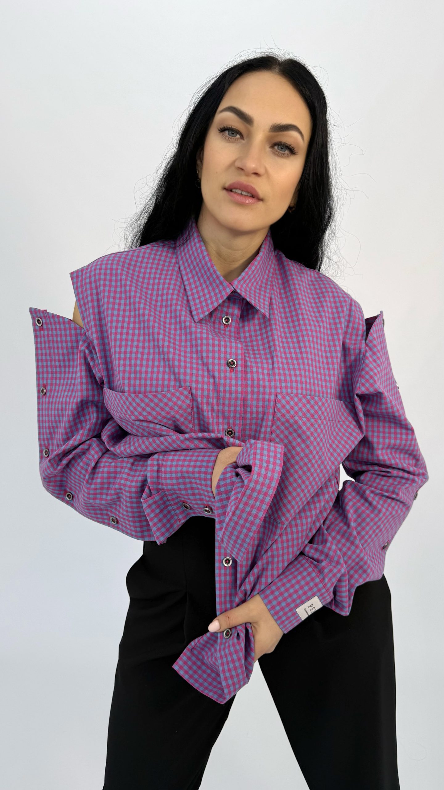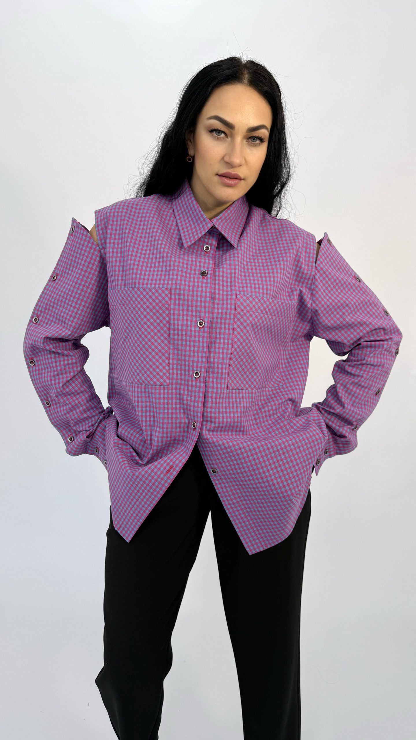 Лаконичная, но очень заметная рубашка в клетку — идеальный выбор, если хотите добавить образу характер и цвет. Оверсайз‑силуэт сидит свободно и приносит максимум комфорта: оригинальные детали на рукавах — ряд пуговиц/люверсов, позволяющих менять посадку и делать образ более динамичным.