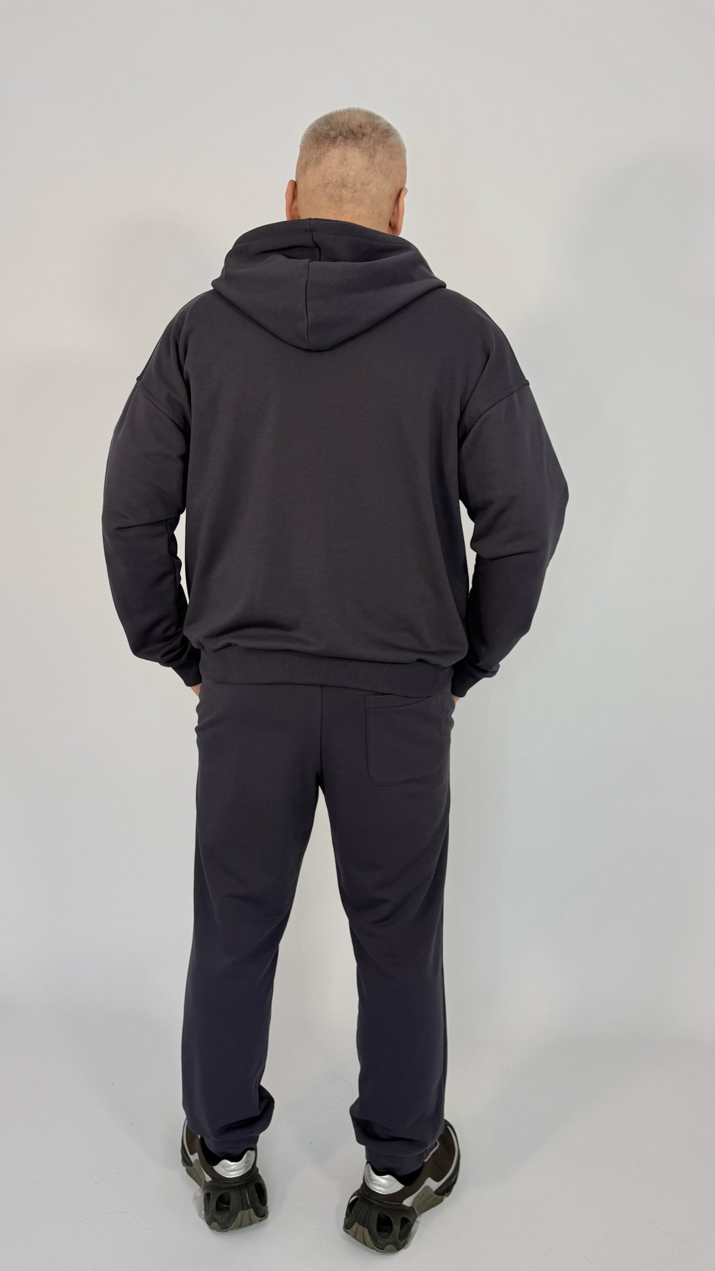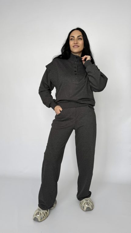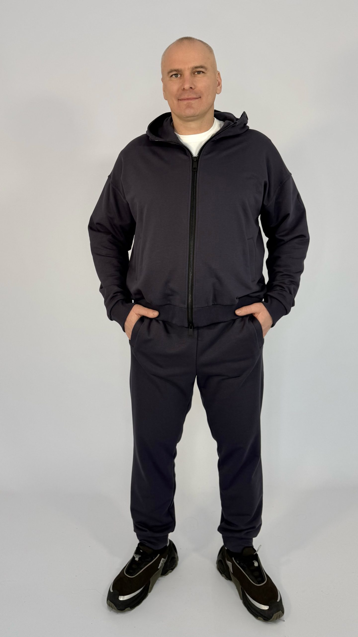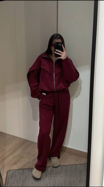 Стильный и универсальный спортивный костюм в цвете баклажан — идеальный выбор для тех, кто ценит комфорт без лишней вычурности. Лаконичный дизайн с центральной молнией и капюшоном легко сочетается с кроссовками и верхней одеждой, а аккуратные карманы и эластичные манжеты добавляют практичности в повседневном использовании.